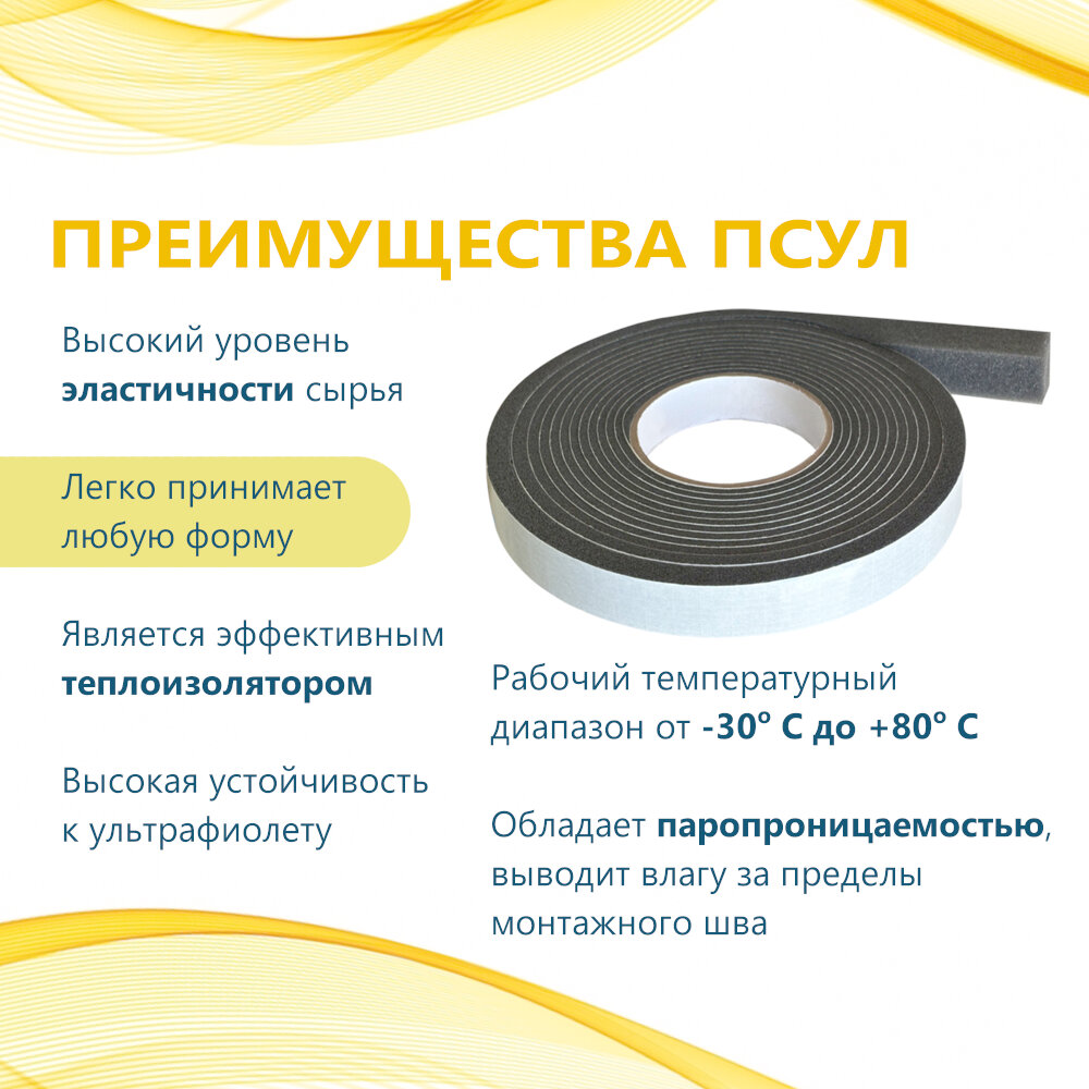 УУплотнитель ПСУЛ – предварительно сжатая уплотнительная лента, изготавливается из полиуретановой пены повышенной эластичности с пропиткой из модифицированного акрила, которая увеличивает срок службы материала. С одной стороны ПСУЛ пропитывается клеевым составом для быстрого надежного монтажа. Поставляется в роликах в предварительно сжатом состоянии.