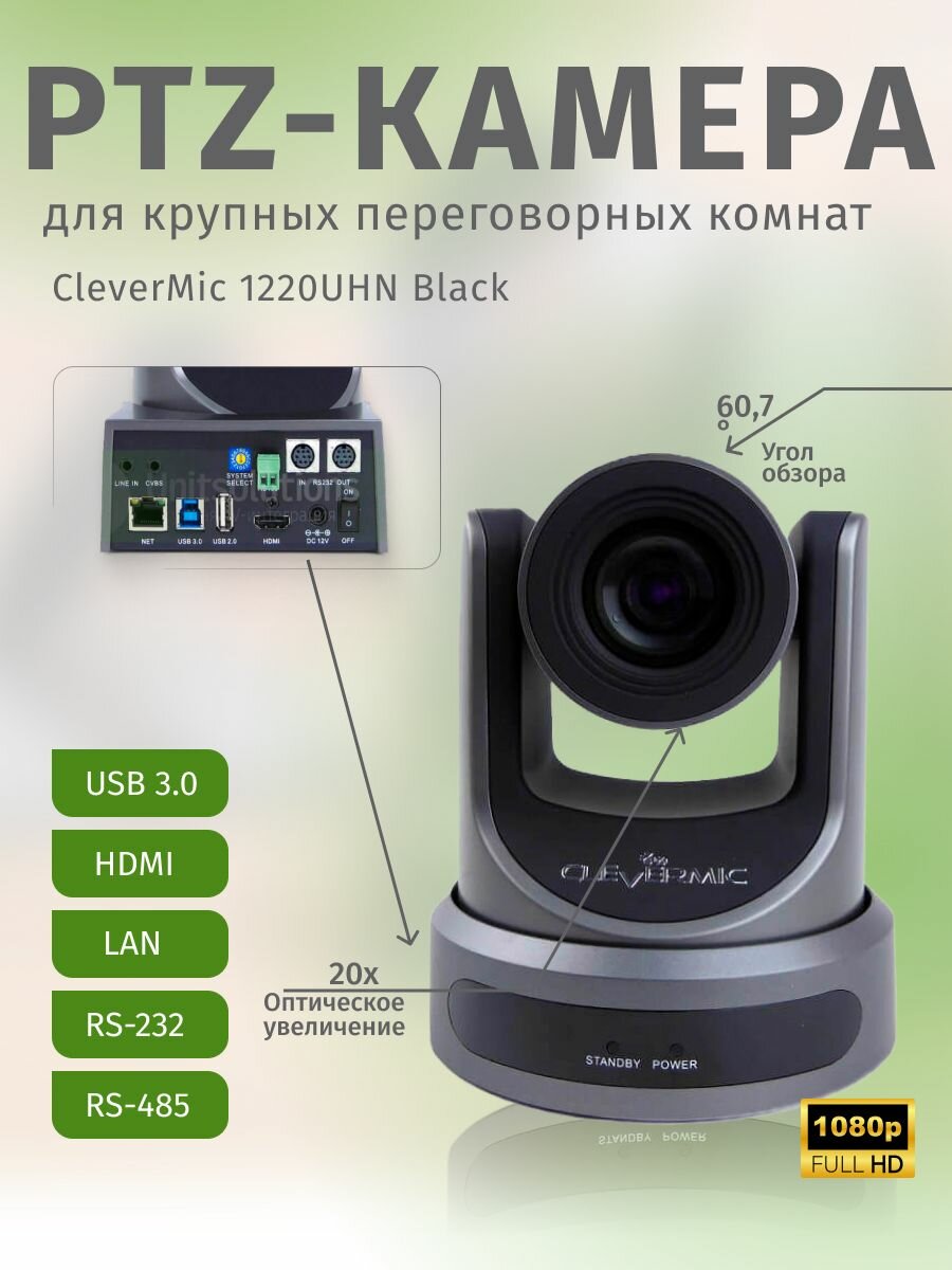 PTZ-камера CleverMic 1220UHN Black (FullHD, 20x, USB 3.0, HDMI, LAN): сравнение цен, характеристики, фото, актуальное наличие и цены.