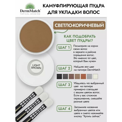 DermMatch/Пудра-загуститель для волос , Light Brown (светло-коричневый), 40 гр: сравнение цен, характеристики, фото, актуальное наличие и цены.