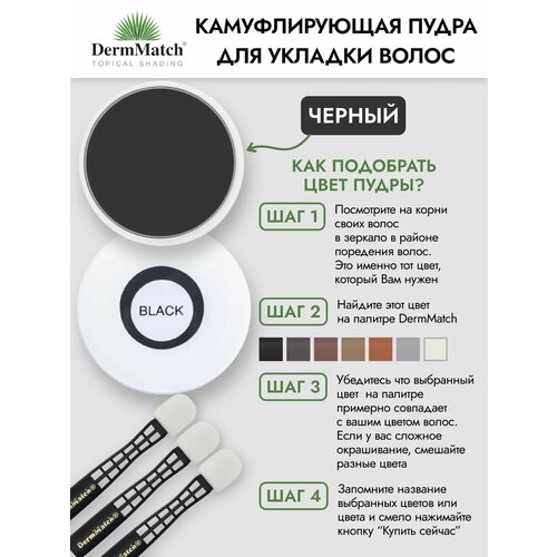 Загуститель для волос, маскирующая пудра для волос, камуфляж Black (черный), 40 гр DermMatch: сравнение цен, характеристики, фото, актуальное наличие и цены.
