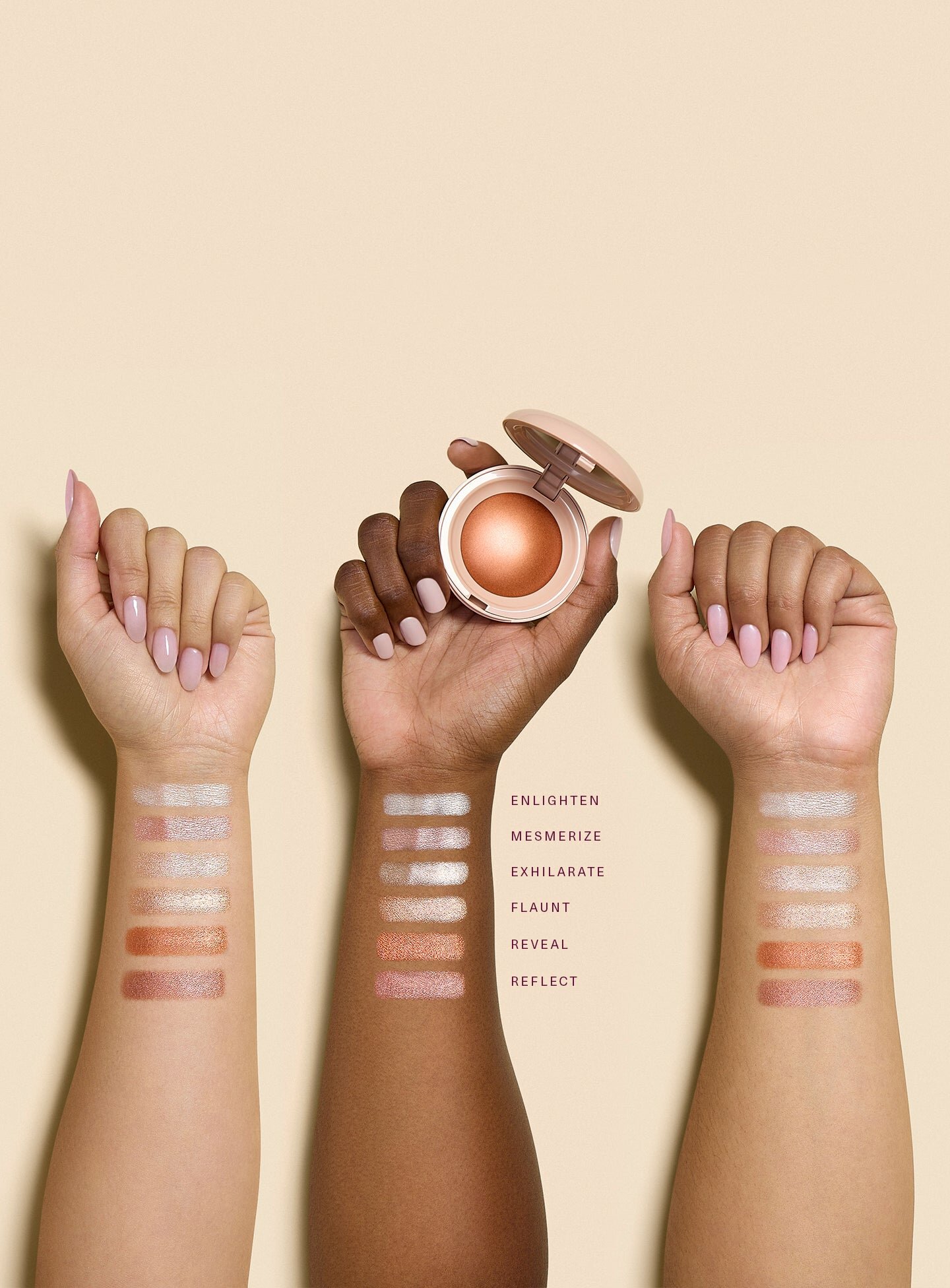 • Эффект жидкого хайлайтера в пудровой форме: Мгновенно гладкая, сияющая кожа благодаря удобному компактному формату.