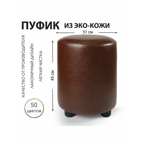 Мягкий круглый пуф от российского бренда "Сонли" выполнен в современном стиле и из экокожи высшей категории. Обивка обладает высокой прочностью, износостойкостью и устойчивостью к истиранию, что гарантирует длительный срок использования изделия.