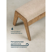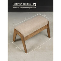 Обивка пуфа выполнена из букле бежевого цвета, который приятен на ощупь и прост в уходе. Каркас пуфа изготовлен из мебельной фанеры и дерева, что обеспечивает прочность и долговечность изделия. Максимальная нагрузка 100 кг.