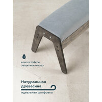 Березовый каркас обеспечивает прочность и долговечность пуфа. Серый велюр обивки приятен на ощупь и прост в уходе.