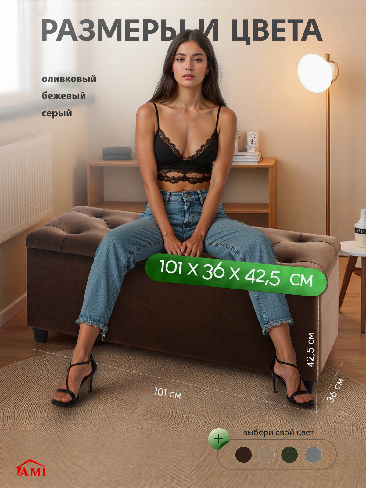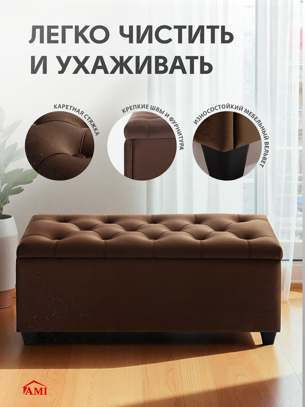 Пуфик банкетка в прихожую, спальню с ящиком для хранения Классик 101х36х42, вельвет коричневый, Ами Мебель Беларусь: сравнение цен, характеристики, фото, актуальное наличие и цены.