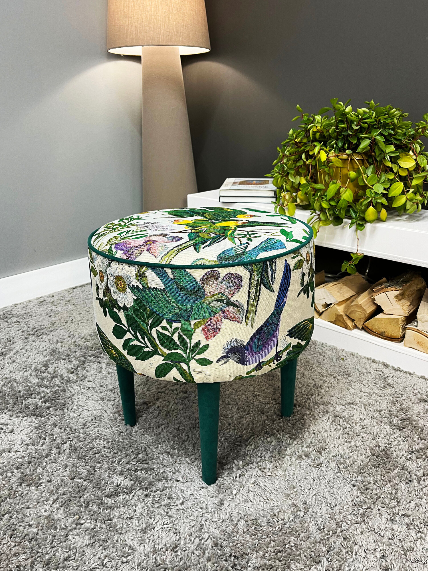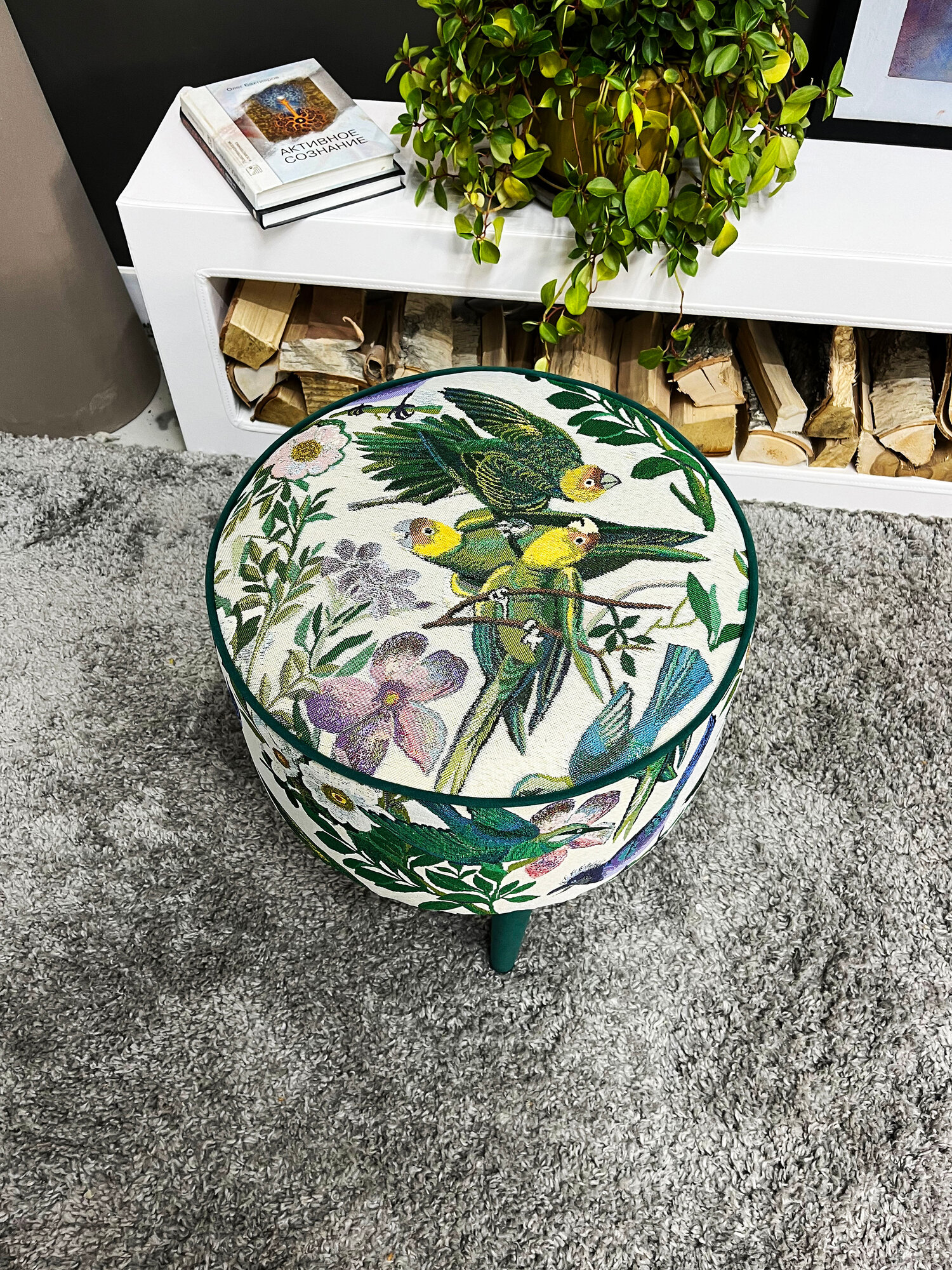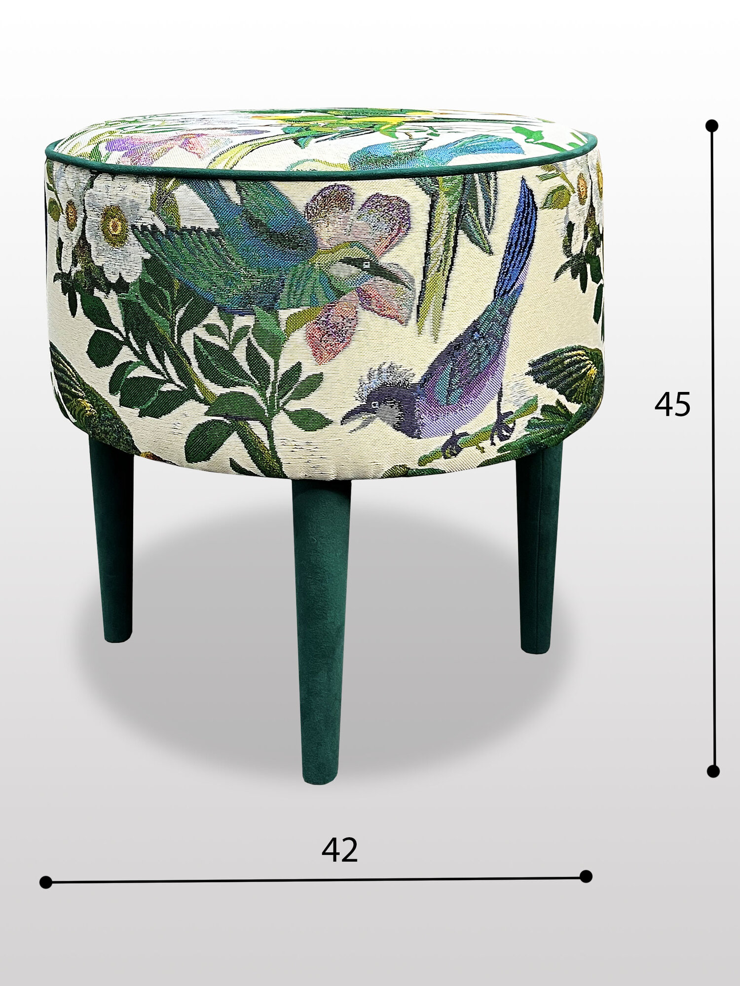 Купить Пуф BORDADO «BARBI» для прихожей 42 х 42 x 45см, круглый, гобелен, велюр, тканевые ножки, цвет «попугаи» с доставкой по всей России.