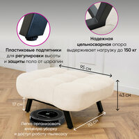 Дизайнерский пуф 308 предмет мебели, который нужен каждому. Пуф станет местом для игр в детской комнате, продолжением кресла или дивана, а также универсальным помощником в коридоре и спальной комнате. Пуф 308 прямоугольной формы 95 на 70 см, легко превратит ваш прямой диван в угловой. Станет излюбленным местом вашего питомца, а также выполнит роль диванчика на балконе или террасе. А ещё справится с ролью вместительной банкетки в прихожую и, конечно же, подставки для ног. На пуф можно поставить сумочку, присесть или с помощью него сделать контрастный цветовой акцент в интерьере. Он лёгкий в перемещении, но при этом выполнен на цельнометаллической основе, что обеспечивает надёжность конструкции, а пластиковые подпятники защищают напольное покрытие от повреждений и регулируют высоту. При уборке в помещении его не нужно передвигать, поднимать, так как высокие ножки (17 см) обеспечивают оптимальную высоту для самостоятельной уборки и для робота пылесоса. Благодаря износостойкому велюру, он легко чистится и долго сохраняет свой первоначальный внешний вид. В своём интерьере вы сможете собрать коллекцию 308, в которую входит: диван, кушетка, кресло и пуф. Модели можно комбинировать друг с другом по вашему желанию. Сочетать пуф с креслом, диван с пуфом или собрать полный комплект для уютного отдыха всей семьи. Все модели мягкой мебели “Brendoss” можно посмотреть в нашем магазине.