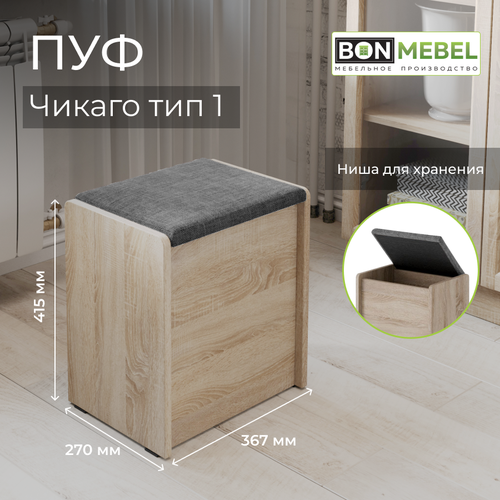 Купить Пуф BONMEBEL Чикаго Тип 1К, ЛДСП Дуб сонома/Рогожка Серый, с ящиком с доставкой по всей России. Пуф BONMEBEL Чикаго Тип 1К, ЛДСП Дуб сонома/Рогожка Серый, с ящиком: сравнение цен, характеристики, фото, актуальное наличие и цены.