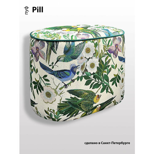 Пуф BORDADO «PILL» для прихожей 52 х 32 x 41 см, овальный, гобелен, велюр, декоративный кант, принт «попугаи»: сравнение цен, характеристики, фото, актуальное наличие и цены.