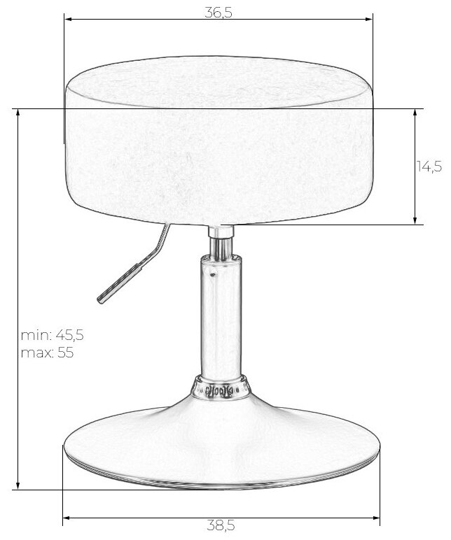 Пуф DOBRIN DANNY. Материал обивки экокожа. Материал каркаса фанера. Материал основания металл. Размеры: высота 55(46) см, ширина 38,5 см, глубина 38,5 см, ширина и длина основания 38,5 см. Размеры сиденья: , ширина сиденья 36,5 см, глубина сиденья 36 см, толщина сиденья 14,5 см. на диске. Форма сиденья круглая. с регулировкой высоты. Страна производства Китай. Максимальная нагрузка на 0 125 кг. Гарантийный срок 12 месяцев, минимальный срок службы от 5 лет.