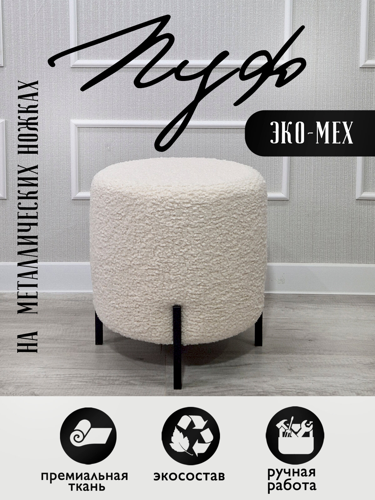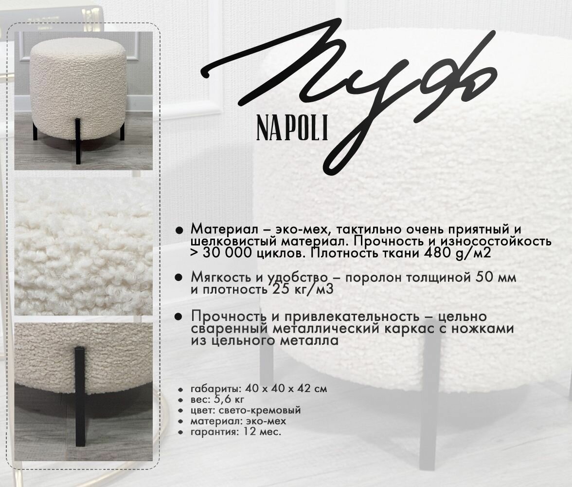 Пуф GENESIS HOME, Napoli Мех, размер L (40*40*42), искусственный мех, круглый, на металлических ножках: сравнение цен, характеристики, фото, актуальное наличие и цены.