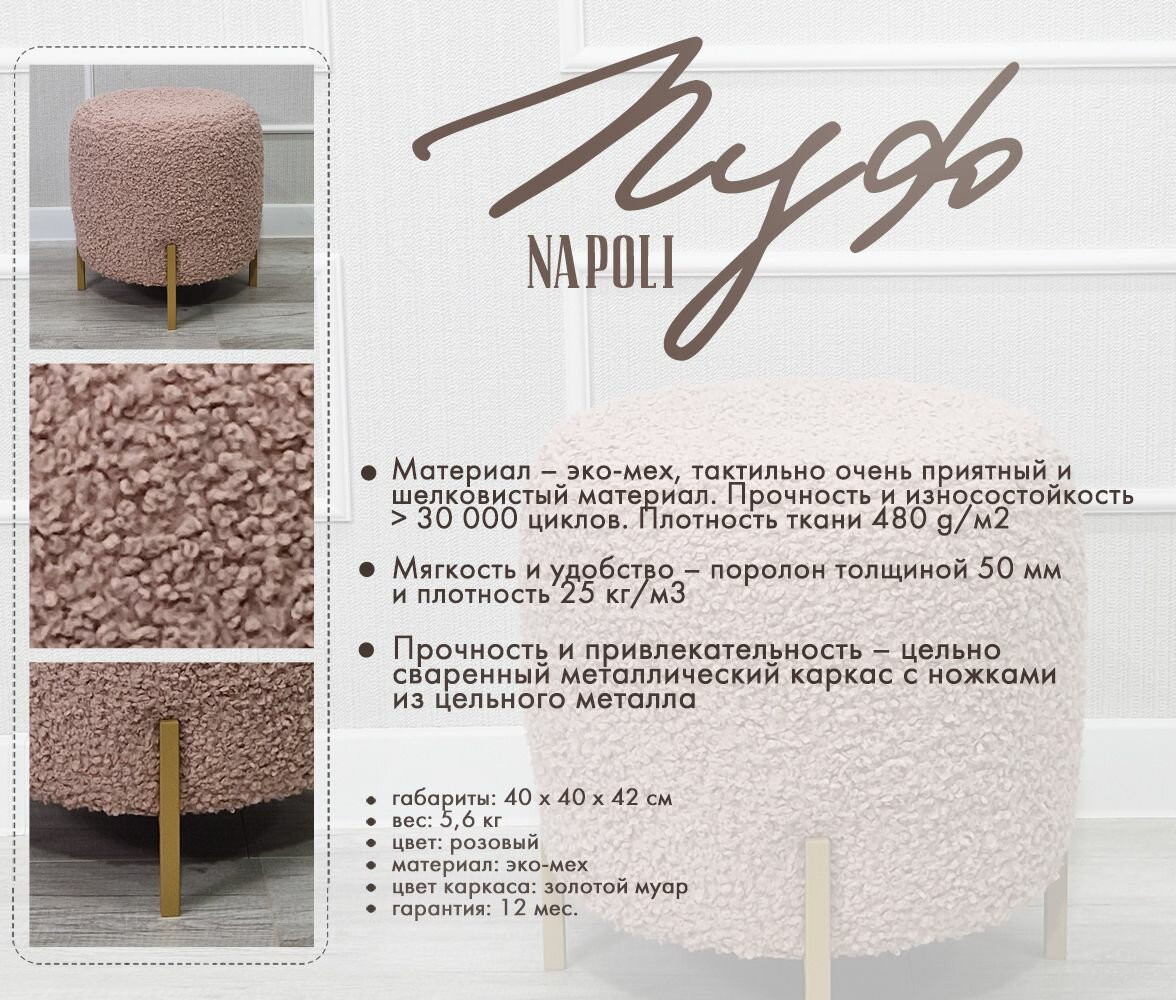 Пуф GENESIS HOME, Napoli Мех, размер L (40*40*42), искусственный мех, круглый, на металлических ножках: сравнение цен, характеристики, фото, актуальное наличие и цены.