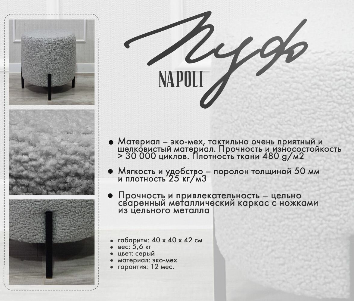 Купить Пуф GENESIS HOME, Napoli Мех, размер L (40*40*42), искусственный мех, круглый, на металлических ножках с доставкой по всей России. Пуф GENESIS HOME, Napoli Мех, размер L (40*40*42), искусственный мех, круглый, на металлических ножках: сравнение цен, характеристики, фото, актуальное наличие и цены.