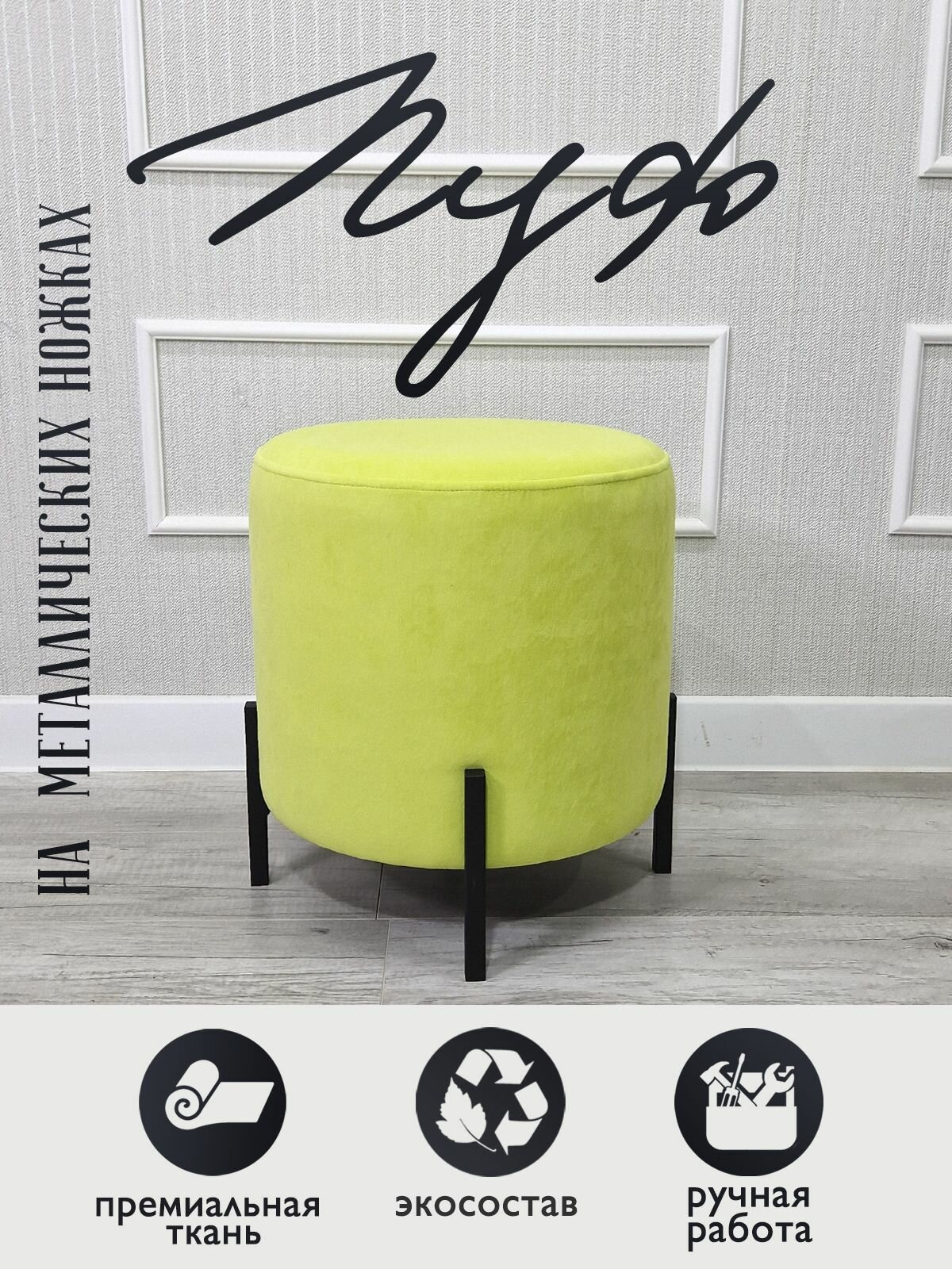 · Каркас пуфа выполнен из березовой фанеры и дерева