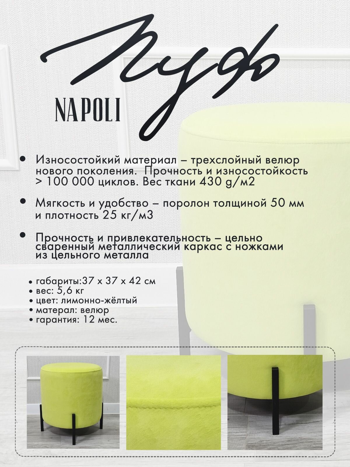 При производстве наших пуфов из коллекции «NAPOLI» используются исключительно качественные и экологичные материалы.