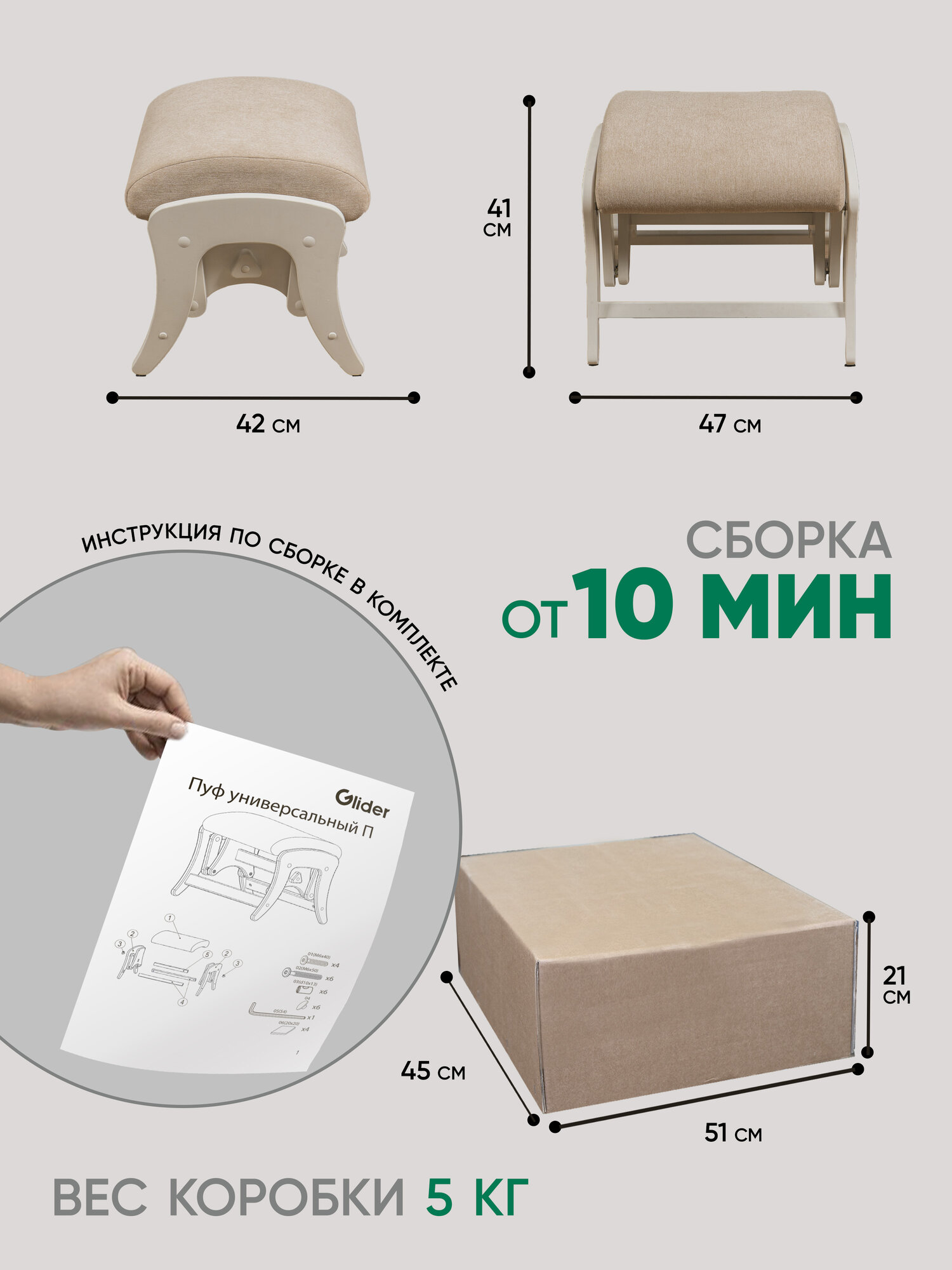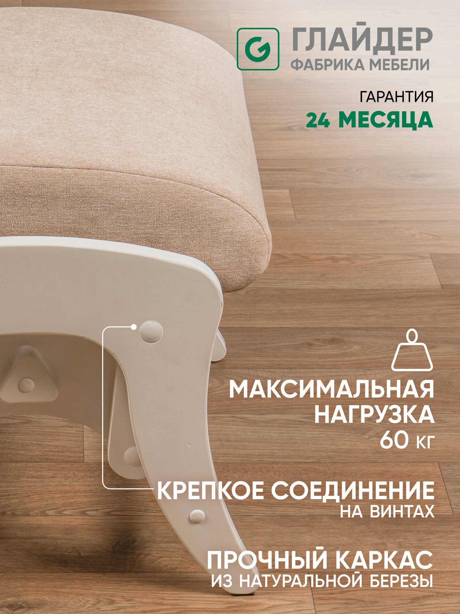 Пуф глайдер Glider в прихожую, пуфик для ног в гостиную, спальню, в ткани Микрошенилл, цвет бежевый/ белый: сравнение цен, характеристики, фото, актуальное наличие и цены.