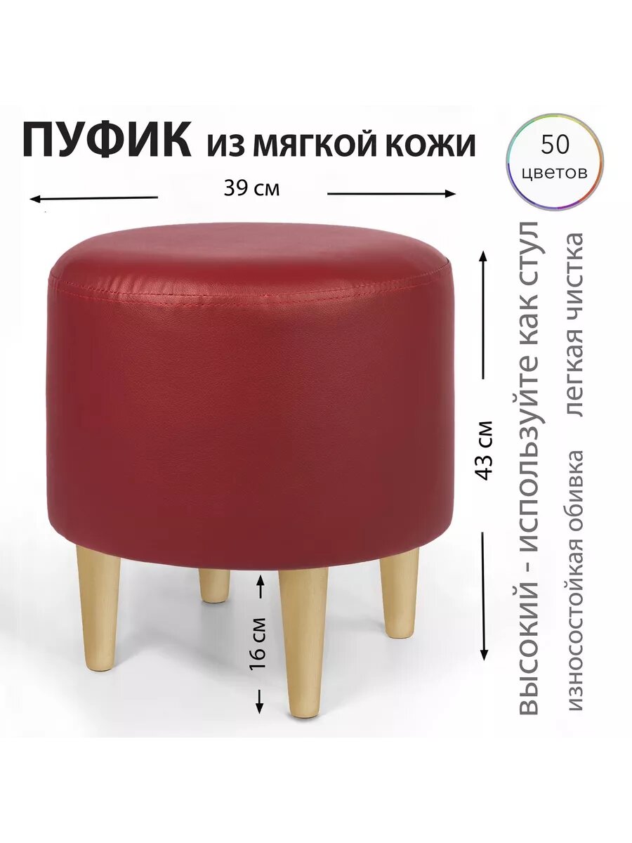 Несмотря на компактные размеры: диаметр сиденья 39 см, высота 43 см, выдерживает он максимальную нагрузку до 130 кг, поэтому выдержит и ребенка, и женщину, и крепкого мужчину. Идеально подходит для использования в качестве табурета, подставки для ног, пуфика для туалетного столика и даже как пуфик для примерочной или ПВЗ.