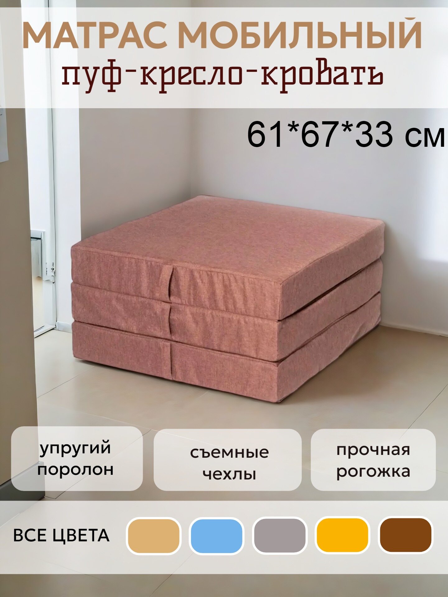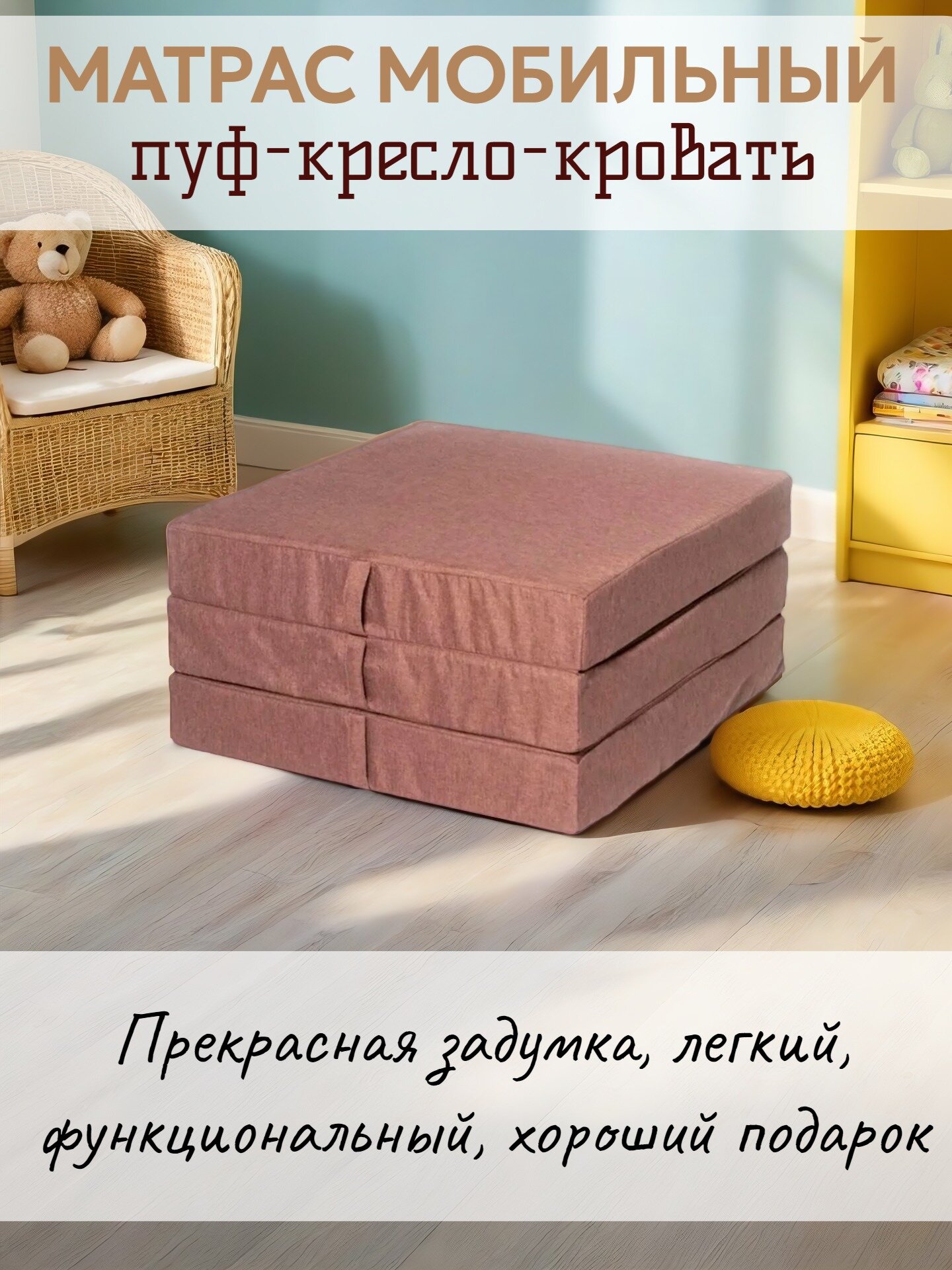 Пуф-матрас трансформер раскладной складной мобильный 200*60см, рогожка, 3 секции, со съемным чехлом, поролон, Кор: сравнение цен, характеристики, фото, актуальное наличие и цены.
