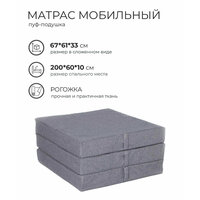 Купить Пуф-матрас трансформер раскладной складной мобильный 200*60см, рогожка, 3 секции, со съемным чехлом, поролон, серый с доставкой по всей России.
