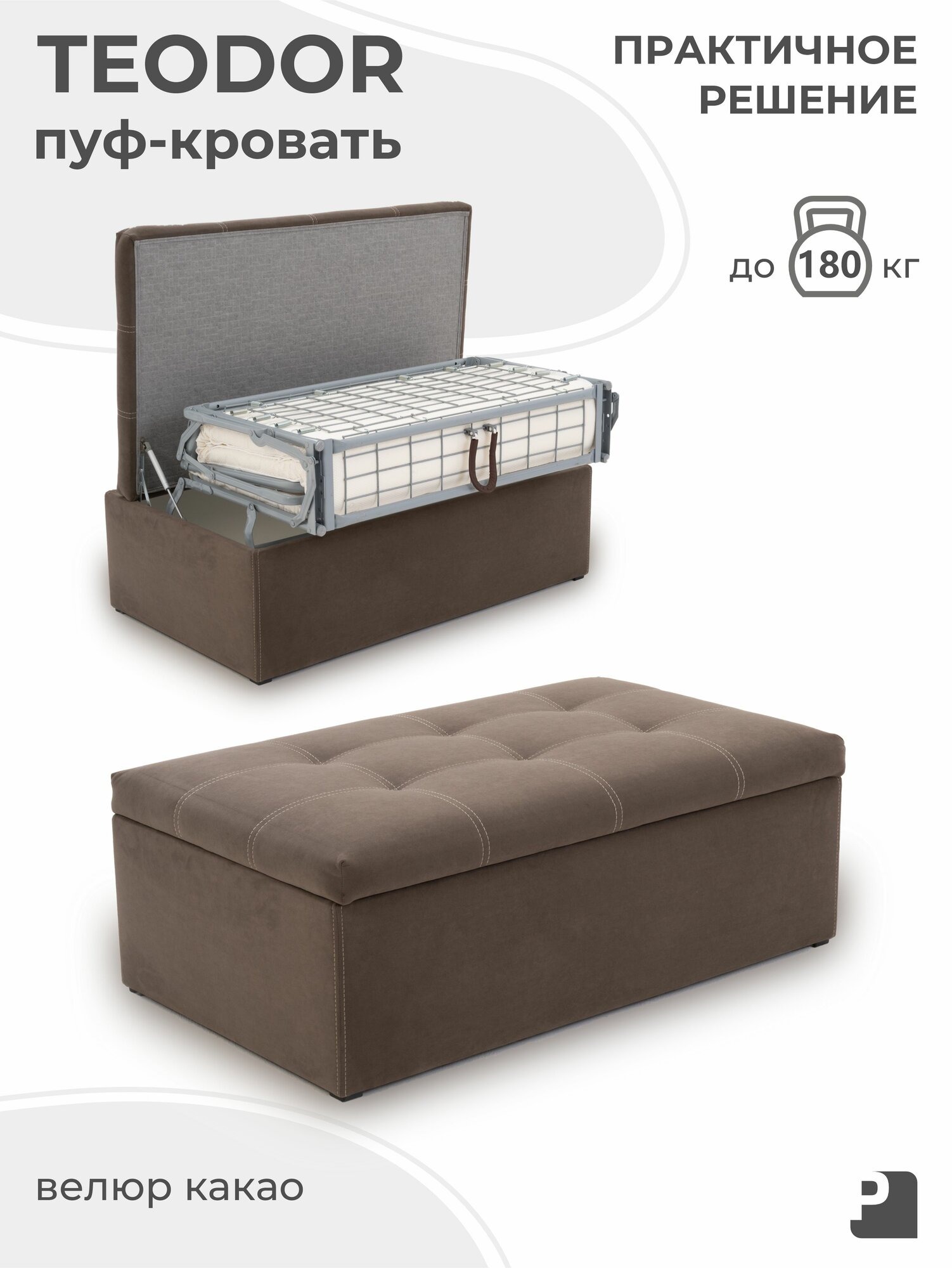 Пуф-кровать, раскладушка, велюр какао 100 см, Мебельное бюро PEREVALOV: сравнение цен, характеристики, фото, актуальное наличие и цены.