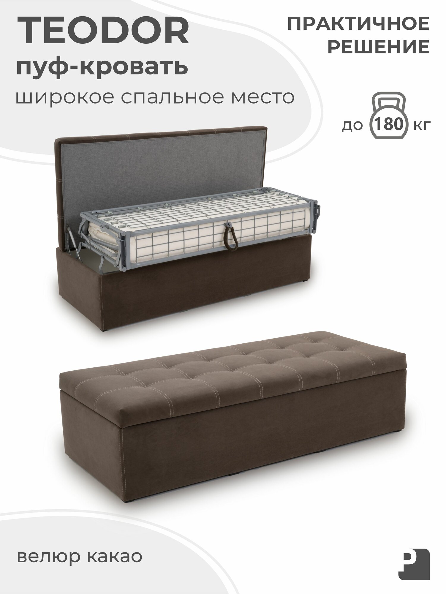 Пуф-кровать, раскладушка, велюр какао 140 см, Мебельное бюро PEREVALOV: сравнение цен, характеристики, фото, актуальное наличие и цены.