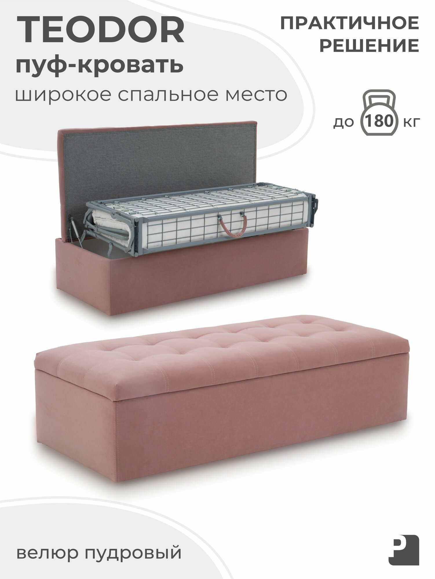 Пуф-кровать, раскладушка, велюр пудровый 140 см, Мебельное бюро PEREVALOV: сравнение цен, характеристики, фото, актуальное наличие и цены.