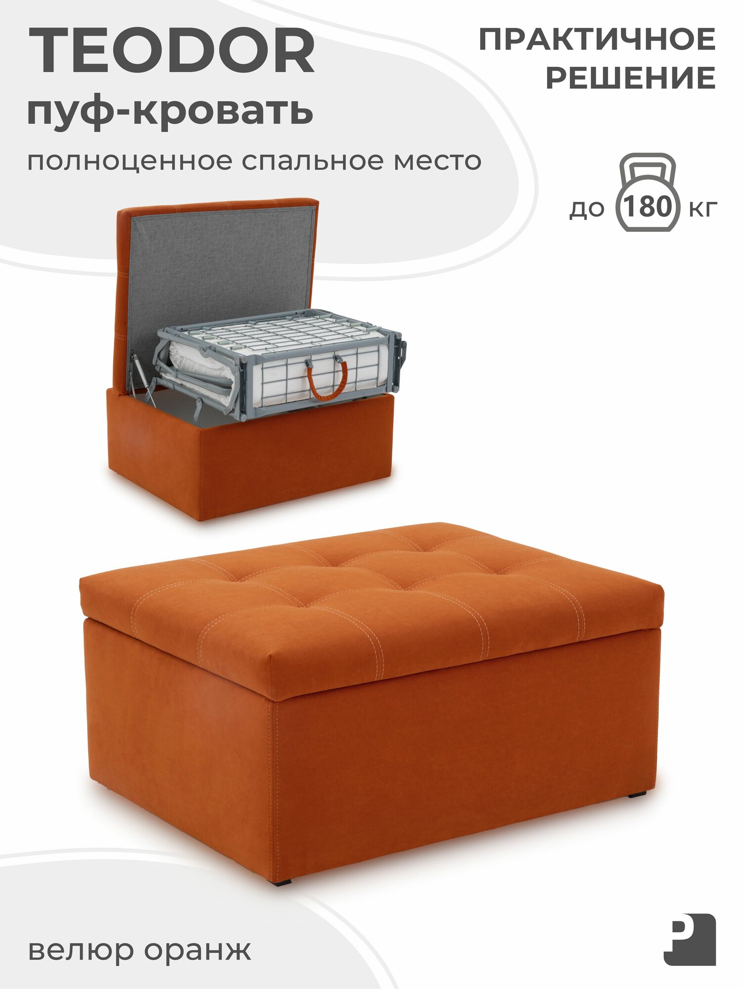 Пуф-кровать TEODOR, раскладушка 70 см, велюр оранж Мебельное бюро PEREVALOV: сравнение цен, характеристики, фото, актуальное наличие и цены.