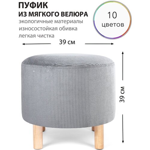 Круглый пуф пуфик Российского бренда "Сонли", выполнен в современном стиле из велюра высшей категории , что гарантирует длительный срок использования изделия. Широкий выбор цветовой гаммы обивочных материалов позволит Вам подобрать пуфик именно под Ваш интерьер и он станет индивидуальным украшением Вашего дома. Круглый Пуф прекрасно впишется в любую комнату дома: в прихожую, в коридор, в детскую, в спальню, в зал, в кабинет, в гардеробную, на балкон или к туалетному столику. Круглый пуфик на ножках многофункционален, его можно использовать как удобный табурет, невысокий стульчик, прикроватную тумбу, пуф для туалетного столика или подставку для ног. Пуф имеет ножки из массива берёзы, которые легко вкручиваются. На ножках предусмотрены войлочные мягкие накладки-подпятники, поэтому они не царапают покрытие пола и не шумят при передвижении. Пуф цельный, без крышки и без ящиков для хранения, безопасен для детей, так как не имеет острых углов. Пуф круглый подходит для игровых зон в кафе, в магазине, в детском саду, в бутике, салоне, в примерочной или для фотосессий. Круглый табурет лёгкий и компактный (высота – 39 см, диаметр сиденья – 39 см, вес пуфа - 3,6 кг). Каркас пуфика-банкетки выполнен из фанеры и массива берёзы отличается своей экологичностью и повышенной прочностью, что позволяет выдерживать нагрузку до 130 кг. Поставляется в коробке из плотного гофрокартона. Этот мягкий стул будет отличным подарком для ваших друзей, близких, родственников или для себя, прекрасно подойдёт в качестве подарка на новоселье, день рождения, юбилей, годовщину свадьбы или Новый год. Добавьте яркости и уюта в интерьер.