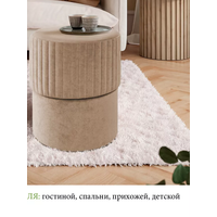 Пуф выполнен в элегантном цвете капучино, который легко впишется в любой дизайн помещения. Благодаря компактным размерам (ширина, высота и глубина составляют 39 см) и круглому дизайну, пуф легко разместится в любом уголке вашего дома.