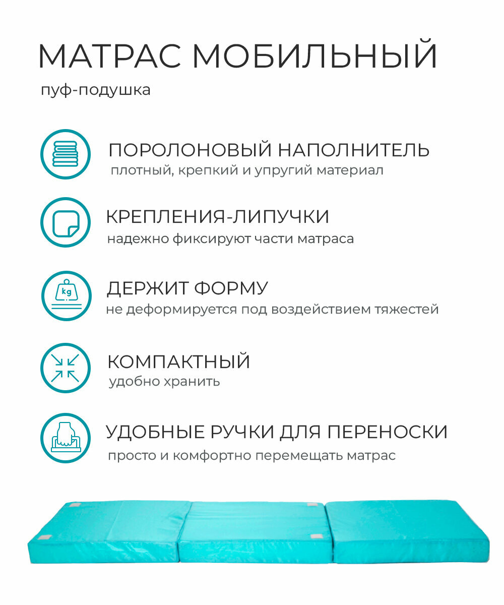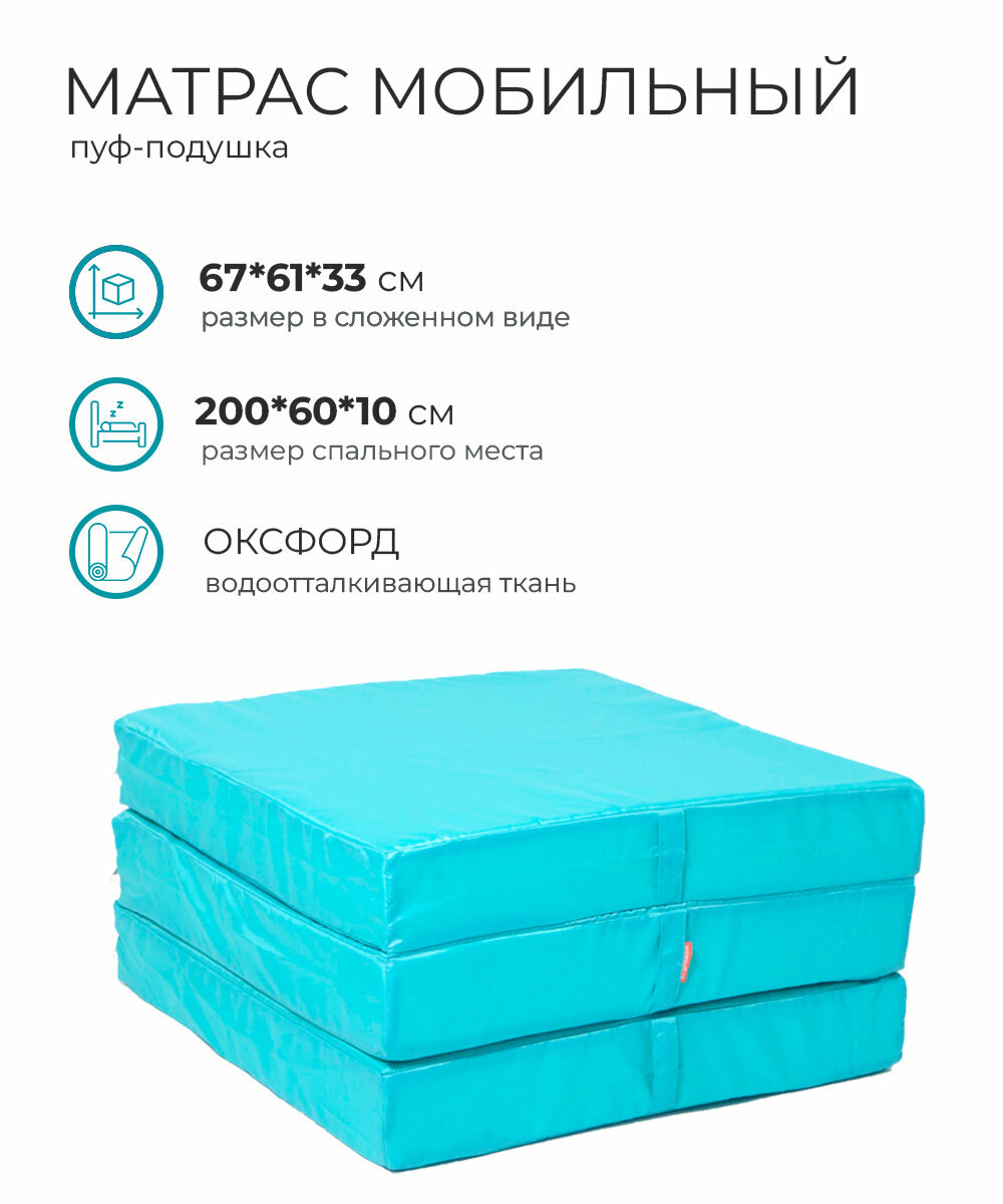 Купить Пуф-матрас трансформер раскладной складной мобильный 200*60 см оксфорд 3 секции со съемным чехлом поролон, Бирюза с доставкой по всей России. Пуф-матрас трансформер раскладной складной мобильный 200*60 см оксфорд 3 секции со съемным чехлом поролон, Бирюза: сравнение цен, характеристики, фото, актуальное наличие и цены.