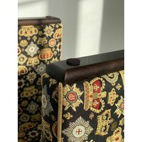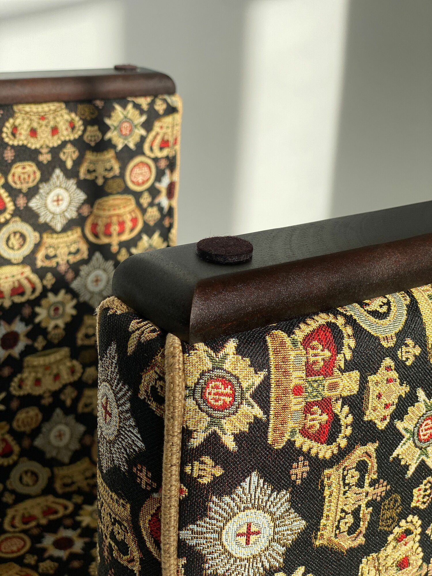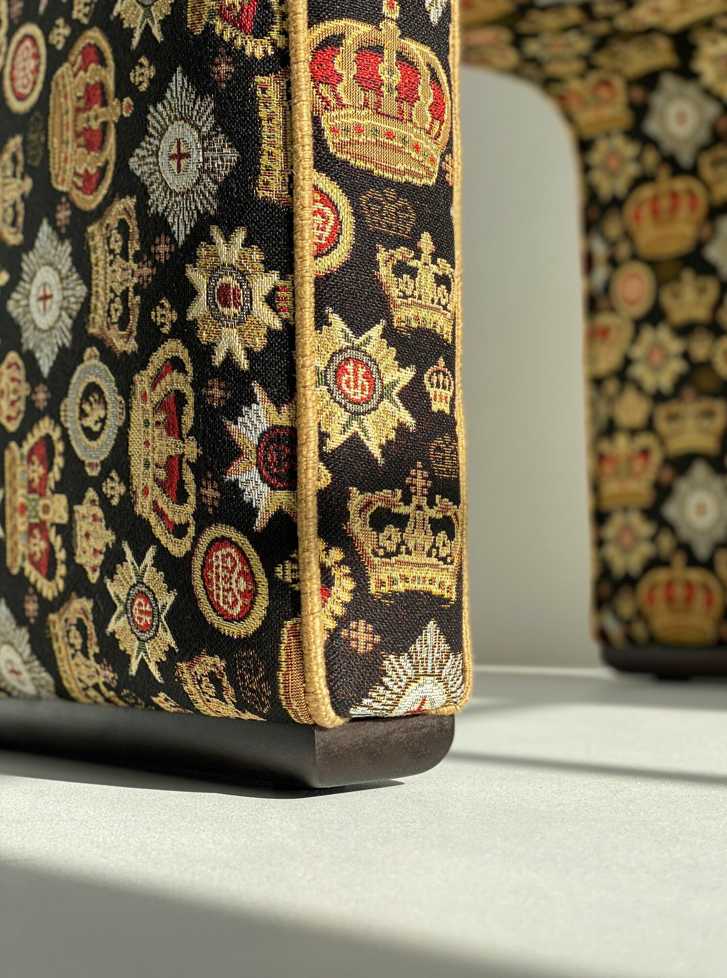 Пуф Mc’GEAR «Подкова 550», гобеленовый, с коронами, березовый каркас