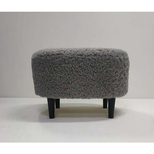 Пуф, Мех барашек серый, Овальный, 60х40х45 см