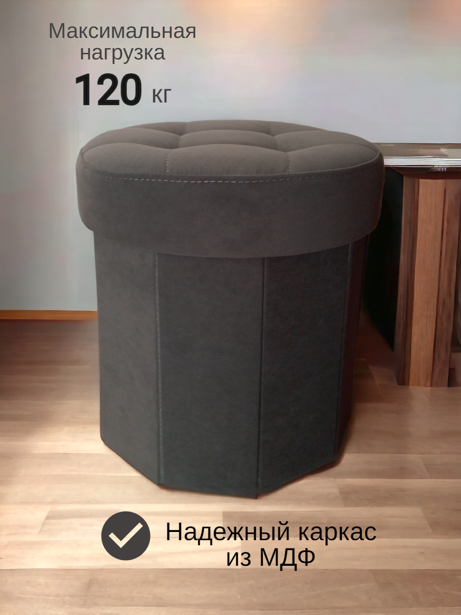 Надежный складной каркас из МДФ выдерживает нагрузку до 120 кг. Объем ящика для хранения составляет 35 литров. Вы можете хранить вещи, обувь, постельное белье, детские игрушки и многое другое внутри пуфика.
