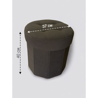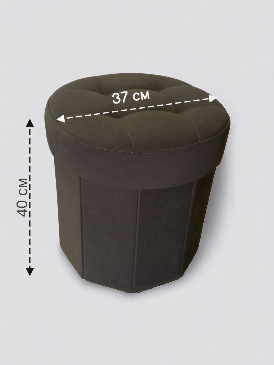Габариты изделия: 37смХ37смХ40см, то есть пуфик компактный и не занимает много места. При сложении его размер составляет всего 7 см.