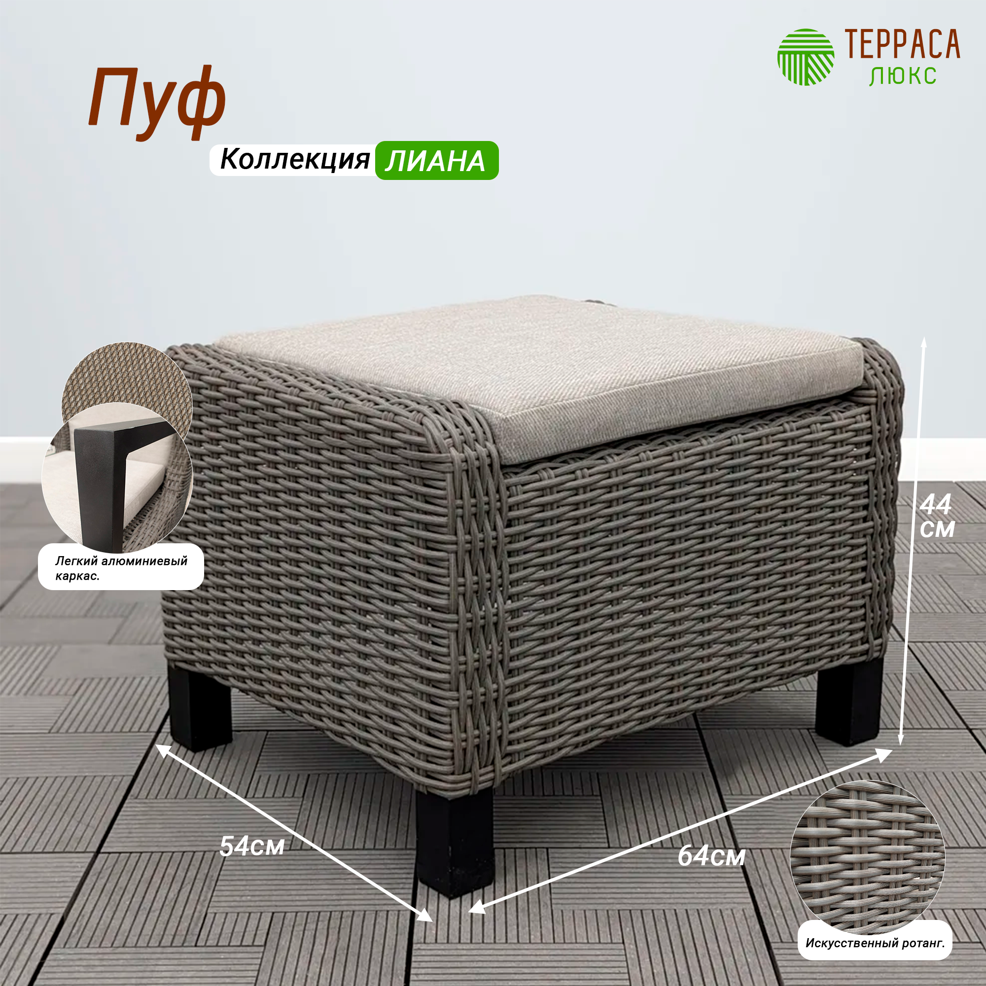 Пуф Терраса Люкс «Лиана», искусственный ротанг/текстиль, съемный, с подушкой, серый: сравнение цен, характеристики, фото, актуальное наличие и цены.