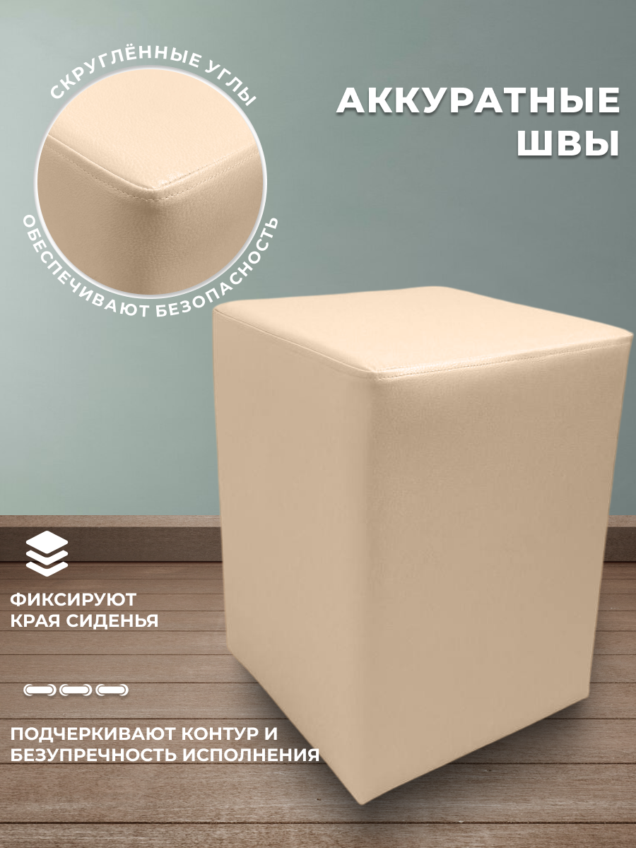 Пуфик квадратный из экокожи идеально впишется в интерьер прихожей, гостиной, спальни или детской комнаты. Также может быть украшением офиса, студии, салонов, ПВЗ пунктов выдачи заказов или примерочных.