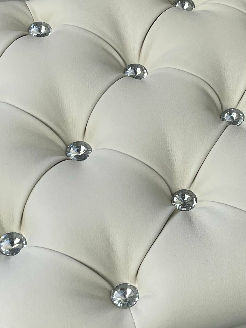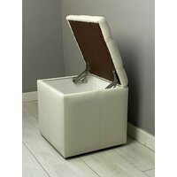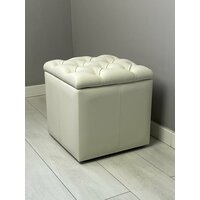 Пуф амалия люкс (Стразы, Экокожа) пуфик с каретной стяжкой открывающийся) идеально подойдет в Вашу прихожую, гостиную или спальню. Вам понравится, насколько изменится Ваша комната с этой очаровательной банкеткой. Чехол обивки из качественной Экокожи. Размеры банкетки (пуфика): длина 38 см , ширина 38 см , высота 39 см . Она поставляется в собранном виде и упакована в гофрокартон. Банкетка в прихожую имеет большой короб с внутренними размерами: длина 32 см, ширина 32 см, глубина 29 см. Выдерживает нагрузку до 150 кг. Сиденье оформлено каретной стяжкой и изящными стеклянными стразами. Под крышкой (сиденьем) находится большой ящик для хранения. Крышка закреплена надежными антресольными петлями с пружинами, которые обеспечивают плавное открывание и закрывание, а также удерживают сидение в открытом положении. Коробка корпуса изготовлена из толстого ламинированного ДСП 16 мм. Мягкий ППУ (пенополиуретан) на боковинах делает их комфортными, не жесткими и создает вместе с декоративными строчками визуальную рельефность. На мебель снизу установлены надежные пластиковые черные ножки, которые обеспечивают устойчивость и не царапают пол. Пуфики имеет конструкцию корпуса, которая позволяет, при желании Покупателя, установить снизу на дно любые варианты ножек. Тем самым Вы можете увеличить банкетку по высоте, дополнительно сделать акцент на стиле комнаты (современный, модерн, классический и т. д.) Пуфики для прихожей и мягкие вешалки фиессо (из нашего ассортимента мебели) - прекрасный комплект для коридора. Пуфы с ящиком удобны в прихожей для хранения обуви (обувница) и других вещей. Прихожая, в которой будут наши банкетка с местом для хранения и вешалка в ткани из велюра (или кожзам в качестве обивки), станет украшением Вашего дома. Пуф прямоугольный в детскую можно использовать для хранения игрушек. Пуфы и банкетки для гостиной и в зал создадут дополнительные места для сидения и хранения. Банкетка для спальни дополнит кровать и станет местом, куда удобно будет убирать покрывало, накидки и другие постельные принадлежности (займется их хранением). Её можно поставить у туалетного столика. К туалетному столику отлично подойдут пуфы из нашей коллекции, как с маленькими неприметными черными пластиковыми опорами, так и с высокими деревянными резными ножками (белыми или венге). Для кухни идеальным вариантом будут банкетки с глубокими ящиками под сидением. Высококачественная искусственная кожа Экотекс с полиуретановым покрытием обладает высокой устойчивостью к многократному изгибу, истираемости, имеет хорошие гигиенические и эксплуатационные свойства. Велюровая обивка выполнена из ткани коллекции Мазерати, которая предоставит возможность насладиться классической роскошью и элегантностью, почувствовать максимум комфорта и удовольствия. Эта ткань прекрасно чистится, поэтому для Вас даже белые пуфик из ткани и вешалка в прихожку не будут проблемными в эксплуатации. Синий и розовый велюровый тканевый материал добавит эксклюзивности в ваш интерьер. Обивка из серого микровелюра отлично подходит для прихожей. Этот классический немаркий цвет придает ей неброскую элегантность, изысканную умиротворенность. Одним словом - классика. Банкетки и пуфики являются отличным решением для подарка своим родным и близким на день рождения, юбилей, новоселье.