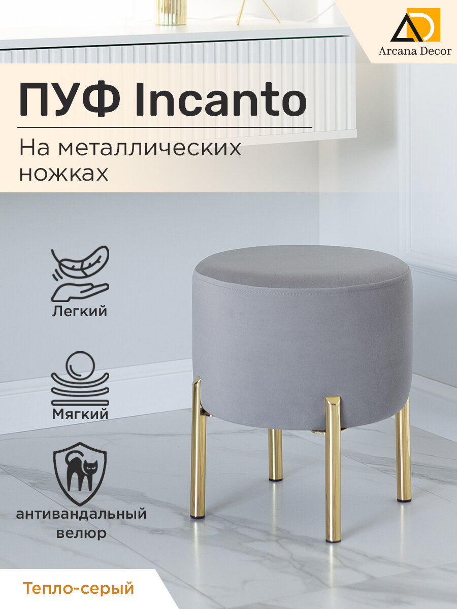 Декоративный круглый мягкий пуф отлично впишется в интерьер любого помещения и дополнит изысканный образ. Пуфик это очень удобное дополнение мебели. Его можно использовать как пуфик для туалетного столика, пуфик для прихожей, прикроватный пуфик или пуфик для зала и гостиной. Наши пуфики выполнены в разных цветах и с разным дизайном: на декоративных металических ножках и без ножек, для удобного использования в разных комнатах вашего дома. Декоративные пуфы изготовлены из прочных экологических легких материалов - дерева и фанеры. Наполнитель пенополиуретан высокой плотности для длительного и комфортного использования пуфика. Также верхушка пуфика увеличенной толщины, что делает ее более мягкой для вашего удобства и комфорта. Декоративный пуф станет отличным подарком для себя и близких на любой праздник, например: новый год, день рождение, новоселье, 8 марта и тд. Переходи по ссылке на наш магазин и добавляй в избранное, чтобы не пропустить новинки. В нашем магазине можно подобрать разные декоративные товары для дома в едином стиле, что гармонично дополнит ваш интерьер. С заботой о вашем уюте. Радуйте себя и близких.