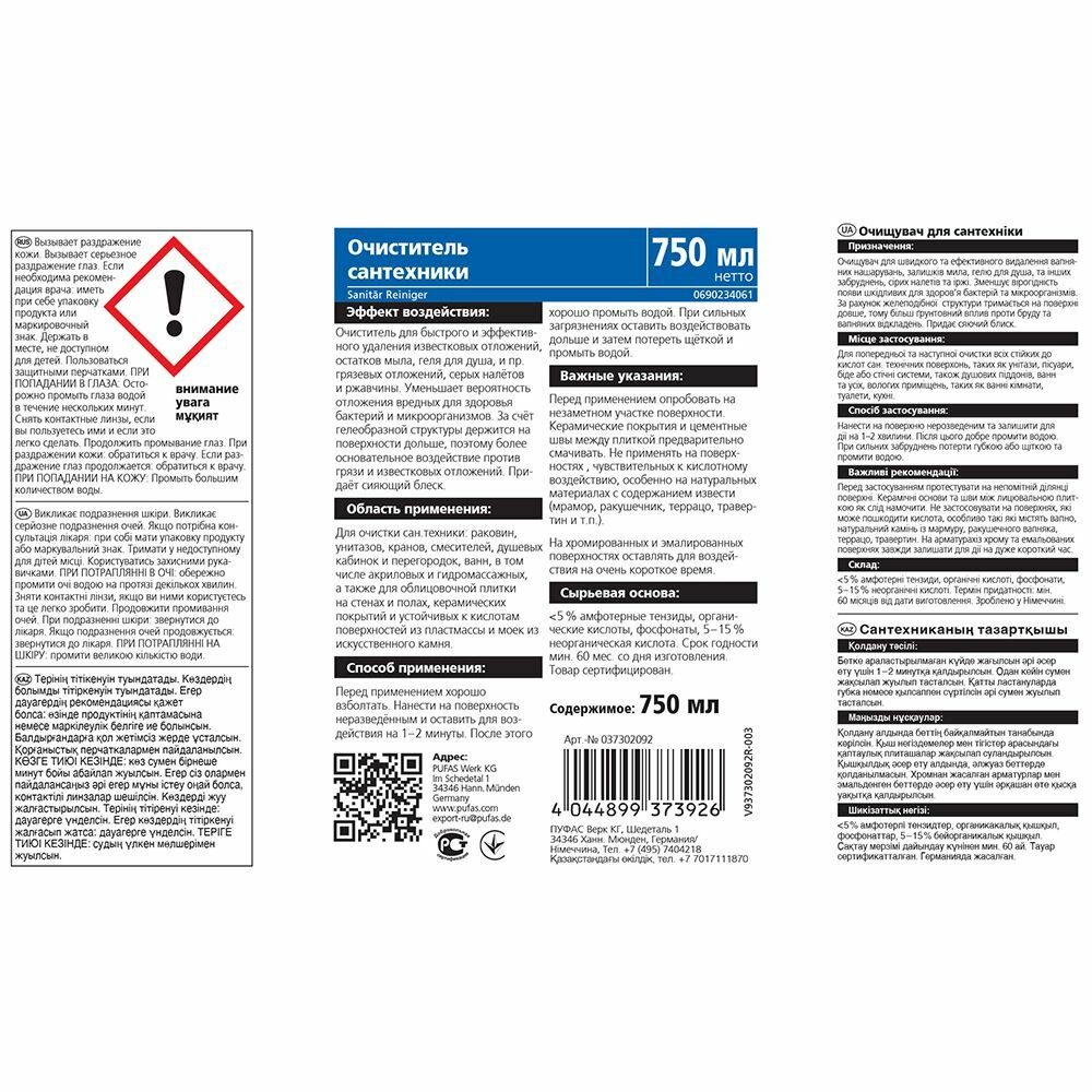 Очиститель для быстрого и эффективного удаления известковых отложений, остатков мыла, геля для душа, и пр. грязевых отложений и ржавчины. Уменьшает вероятность развития колоний бактерий и микроорганизмов. За счёт гелеобразной структуры держится на поверхности дольше, по-этому более длительно взаимодействует с загрязнениями и известковыми отложениями. Придаёт сияющий блеск.
