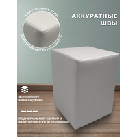 Каркас со всех сторон имеет мягкое покрытие из пенополиуретана, мебельного поролона, который придает мягкость изделию. Сбоку толщина поролона составляет 20 мм. Сверху 50 мм. Края пуфа мягкие, имеют ровную отстрочку, которая подчеркивает контуры, фиксирует и гарантирует стабильность сиденья.