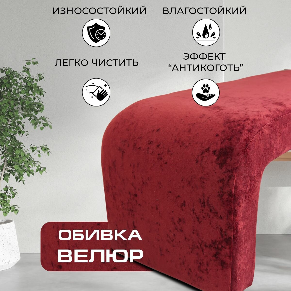 Пуфик банкетка "LADY MAY" – идеальное дополнение для вашей прихожей! Этот универсальный пуфик может использоваться как банкетка в прихожую, стильный пуфик для туалетного столика или уютный пуфик для ног. Мягкий пуфик обеспечит комфорт и уют в вашем интерьере. Стильный дизайн и надежные ножки делают этот пуфик не только функциональным, но и элегантным дополнением к любому помещению. Пуфик "LADY MAY" станет вашим надежным спутником в повседневной жизни. Превосходная композиция прочного материала конструкции и чудесной обивки из Велюра, привносит в дизайн ещё больше совершенства. Каркас пуфа изготовлен из ДСП и Фанеры, этот материал устойчив к внешним воздействиям. Велюр — это материал с нежной и мягкой текстурой, что придает креслу роскошный и элегантный вид. Он также обладает высокой износостойкостью, что гарантирует долговечность и прочность обивки. Велюр также является теплоизоляционным материалом, сохраняя тепло в холодное время года и охлаждая в жару. Кроме того, велюр очень приятен на ощупь и обладает способностью отражать свет, добавляя креслу игривости и яркости. Придайте своей прихожей особый шарм с помощью этого удобного и красивого пуфика на ножках!