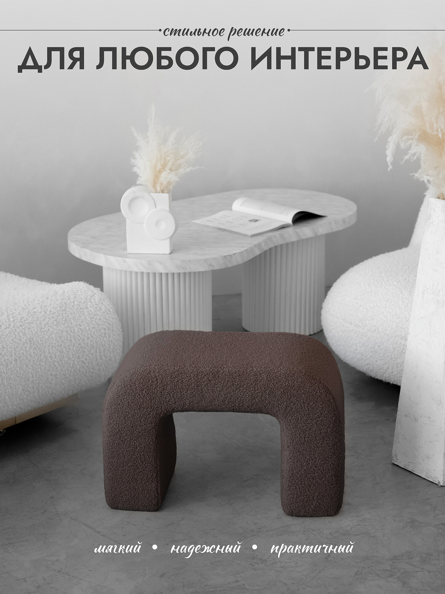 Пуфик для прихожей, в спальню, для туалетного столика, коричневый, Букле: сравнение цен, характеристики, фото, актуальное наличие и цены.