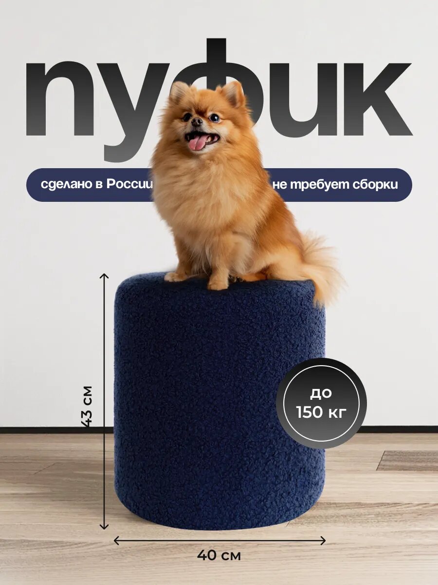 Пуфик EXPERTMEBEL Морис, круглый, лофт стиль, мягкий, темно-синий, 40х40х43 см: сравнение цен, характеристики, фото, актуальное наличие и цены.