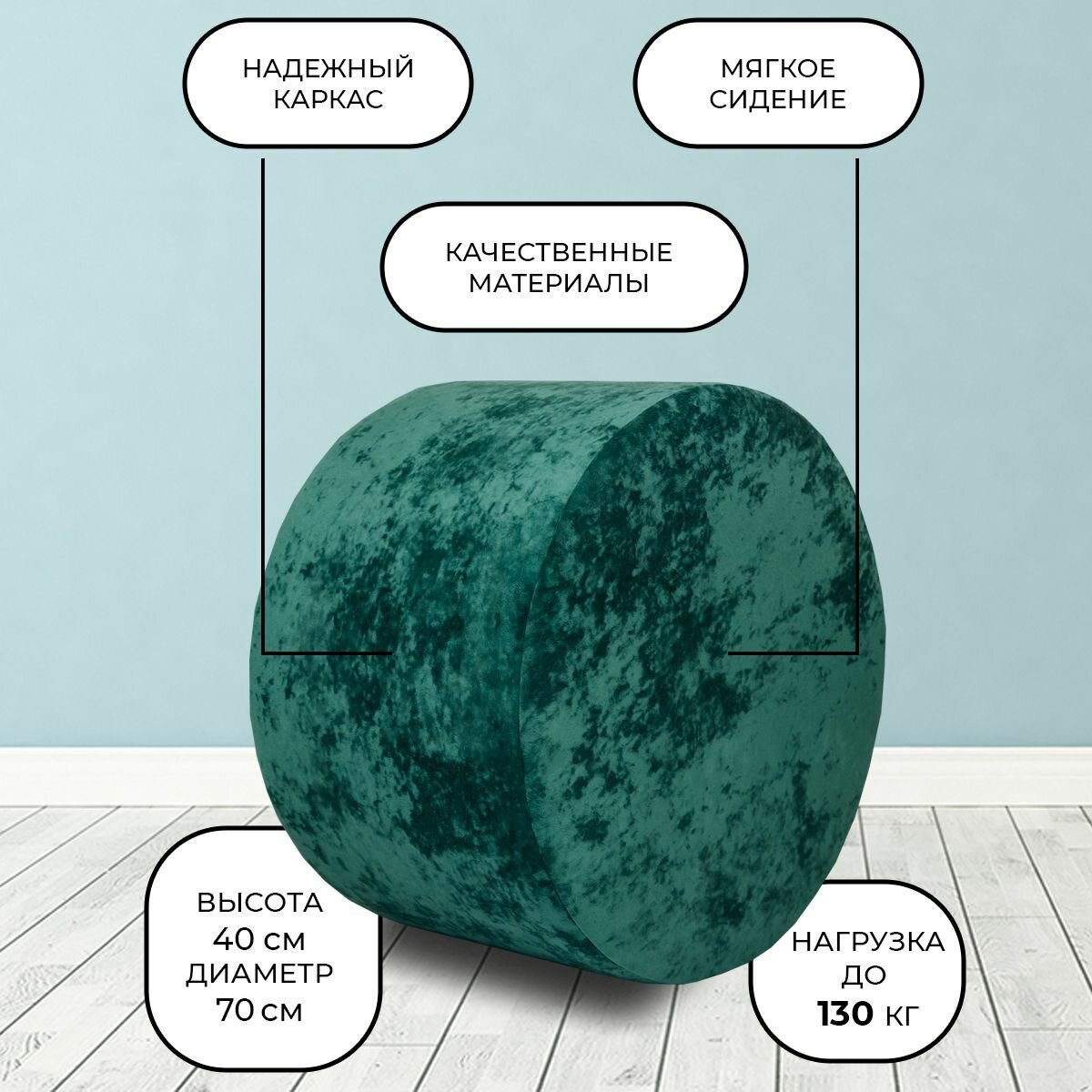 Уютный и стильный пуфик круглой формы - идеальное решение для вашей прихожей. Этот мягкий пуфик не только прекрасно впишется в интерьер, но и станет удобным дополнением к туалетному столику. Пуфик также может использоваться как банкетка в прихожую, обеспечивая комфорт и уют. Велюр — это материал с нежной и мягкой текстурой, что придает креслу роскошный и элегантный вид. Он также обладает высокой износостойкостью, что гарантирует долговечность и прочность обивки. Велюр также является теплоизоляционным материалом, сохраняя тепло в холодное время года и охлаждая в жару. Кроме того, велюр очень приятен на ощупь и обладает способностью отражать свет, добавляя креслу игривости и яркости. Погрузитесь в атмосферу расслабления и комфорта с пуфиком "LADY MAY"!