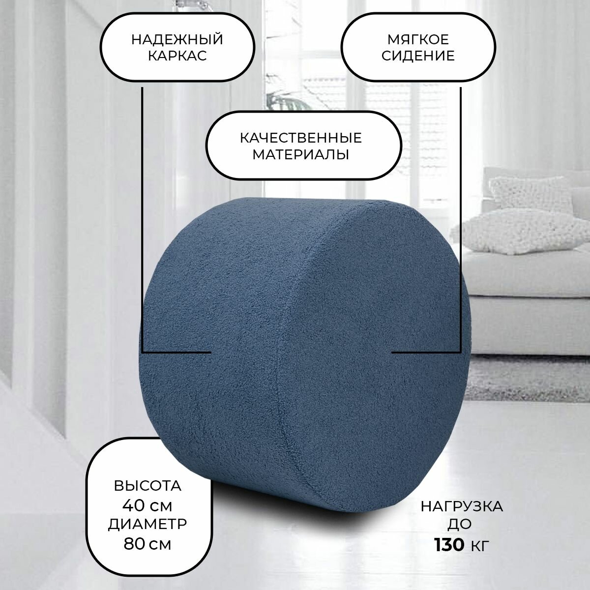 Уютный и стильный пуфик круглой формы - идеальное решение для вашей прихожей. Этот мягкий пуфик не только прекрасно впишется в интерьер, но и станет удобным дополнением к туалетному столику. Пуфик также может использоваться как банкетка в прихожую, обеспечивая комфорт и уют. Букле — это материал с высокой износостойкостью, что делает его идеальным для мебели, которая подвергается частому использованию. Он также обладает отличными теплоизолирующими свойствами, что делает пуф комфортным в любое время года. Кроме того, он легко чистится и устойчив к пятнам, что делает его подходящим для использования в семьях с детьми или домашними животными. Погрузитесь в атмосферу расслабления и комфорта с пуфиком "LADY MAY"!