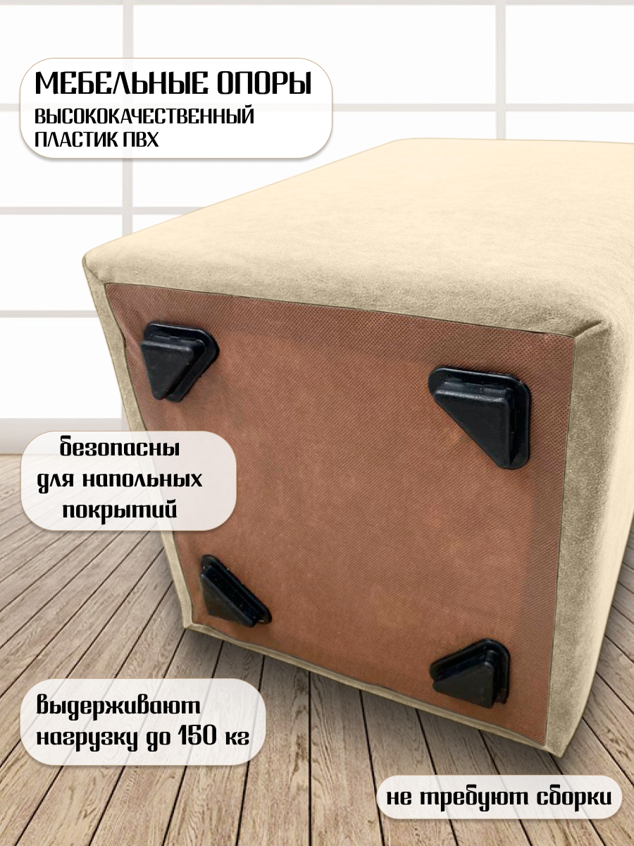 Каркас пуфа имеет покрытие из пенополиуретана - это мебельный поролон, который придает мягкость изделию, имеет амортизирующее свойство и прекрасно держит форму. Сбоку толщина поролона составляет 10 мм. Сверху 50 мм. Края скругленные, с ровной отстрочкой, которая подчеркивает контуры, фиксирует и гарантирует стабильность сиденья. У пуфа нет острых углов, что обеспечивает безопасность при эксплуатации, а также подчеркивает безупречность исполнения.