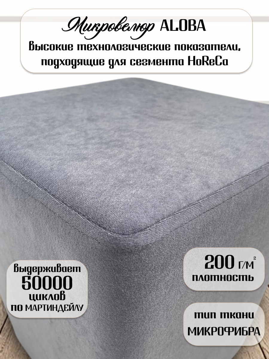 Выполнен из Микровелюра, высокопрочного моющегося материала. Ткань обладает антивандальным эффектом, высокой износостойкостью, бархатистую текстуру, короткий ворс и способность переливаться на солнце и при искусственном освещении.