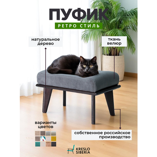 Купить Пуфик на ножках Кресло Сибири, Серый (Ultra Grey), велюр, фанера, для гостиной, спальни, прихожей с доставкой по всей России.