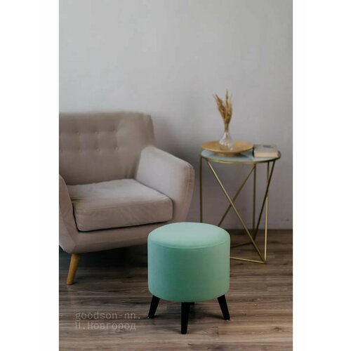 Обивка пуфа выполнена из приятной на ощупь велюровый ткани, фисташкового цвета, устойчивой к истиранию.