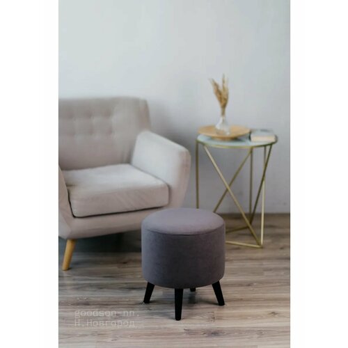 Обивка пуфа выполнена из приятной на ощупь велюровый ткани, светло-коричневого цвета, устойчивой к истиранию.